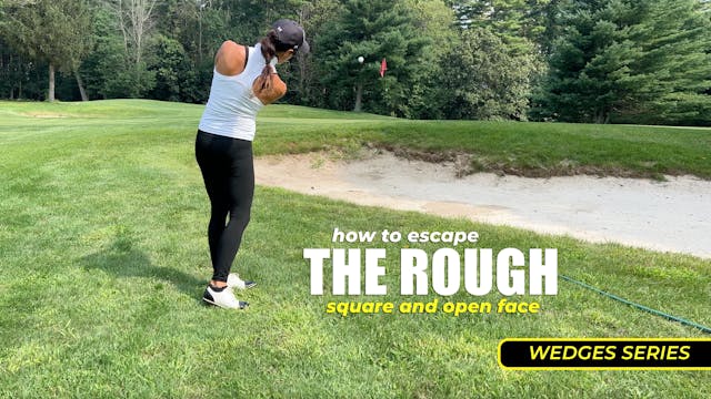 My ball is nestled down in the rough. I walk through my club choice and shot technique. I also share how toe weighting helps the clubface from shutting through the grass.